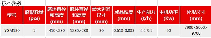 YGM130高壓懸輥磨技術(shù)參數(shù):